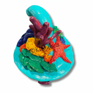 Techniek: Gietklei en geschilderd met acrylverf en afgewerkt met blanke lak