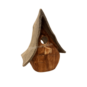 Formaat huisje: Bodem 13×14 cm hoog 28 cm breed 23 cm met vlieggat 35 mm